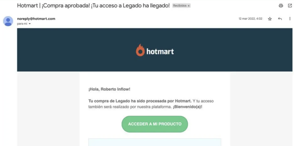 Sólo tiene que buscar el correo con el asunto «Compra aprobada» en su bandeja principal, spam o promociones y seguir las instrucciones en el botón «Acceder a mi producto» (ver foto) 👇